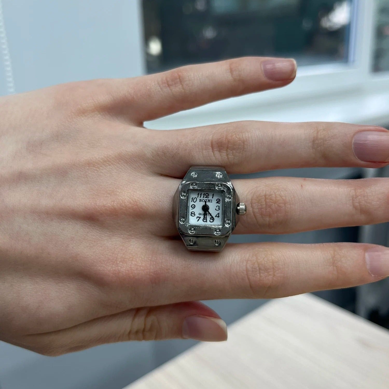 BOZHI - BERLIN è un accessorio unico che unisce la raffinatezza di un anello all’utilità di un orologio funzionante, è pensato per distinguersi grazie a linee uniche e dettagli curati. Potrai tenere sempre sotto controllo l’ora in modo originale, senza rinunciare a eleganza e praticità. Un connubio ideale tra estetica e utilità, che rende questo gioiello un pezzo unico nel suo genere.